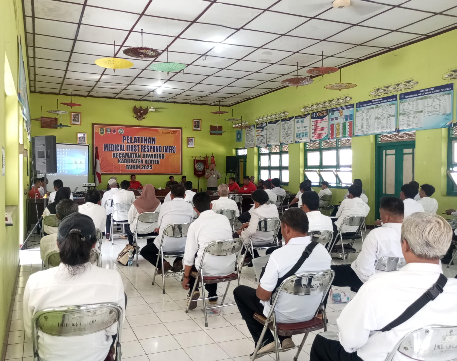 Juwiring, Klaten — Warga Kecamatan Juwiring, Klaten, kini nggak cuma jago panen padi, tapi juga siap panen kesiapsiagaan. Soalnya baru-baru ini mereka digembleng lewat pelatihan Medical First Respond (MFR) yang digelar selama tiga hari penuh sejak Selasa, 10 Juni 2025 di aula kantor kecamatan. Bukan pelatihan rebana, bukan pula pelatihan bikin konten viral. Tapi pelatihan serius: cara menyelamatkan nyawa!